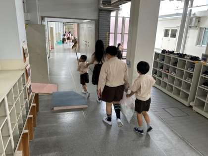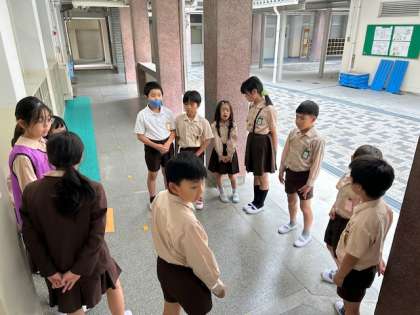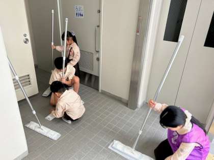 リーダーが中心となって、掃除の振り返りをします。班のみんなが協力できるように声を掛け合います。