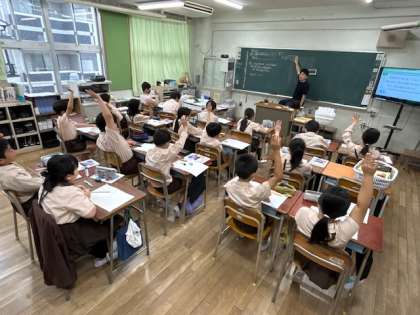 算数「小数のわり算」では、小数のわり算の余りについて考えました。