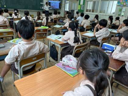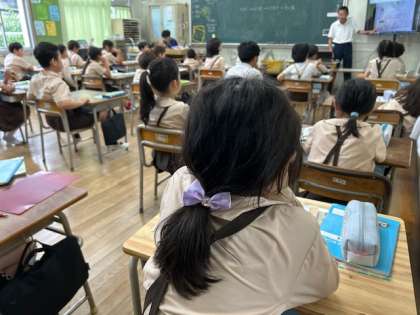 理科「チョウを育てよう」では、観察カードの記録で良い点を全体に紹介しています。観察の視点や記録する時のポイントが分かりました。