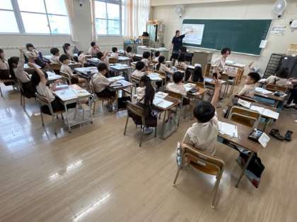 算数「長さの計算」では、長さを比べたり合わせたりして計算で求める方法を考えました。