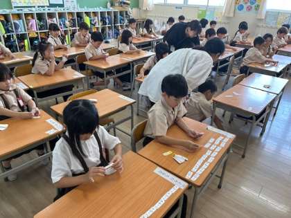 算数「ひきざん」は、カードを使って練習をしていきます。