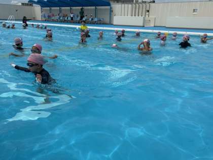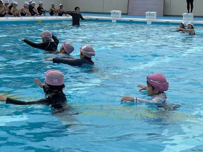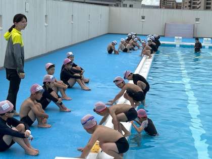 プールサイドは、遮熱シートで覆われているので安心です。