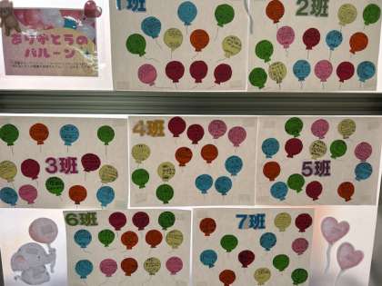 7月に入り1学期も残りわずかとなりました。6月20日のサマーフェスティバル後に「ありがとうのバルーン(班のみんなへの感謝の気持ち)」にしました。