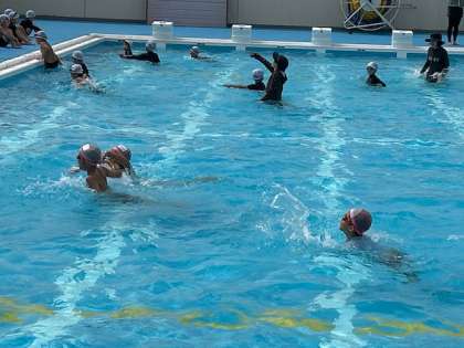 ?水中歩行で体が水に浮く感覚を掴んで行きます。水が気持ち良いです。