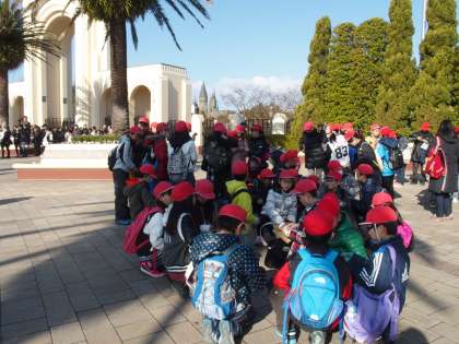 2月10日、快晴の日。6年生は待ちに待った卒業遠足の日です。