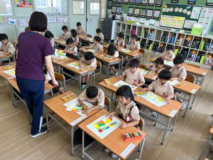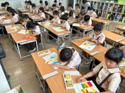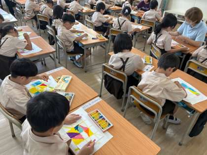 ?図工「パスをしっかりぬろう」は、縁取りをした内側をしっかりと塗り込めました。