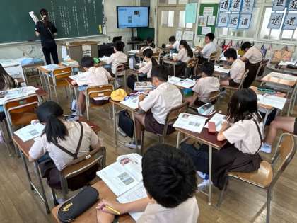 国語「新聞記事を読み比べよう」では、見出しやリード・キャプション等の役割を知り、表現の効果について考えました。