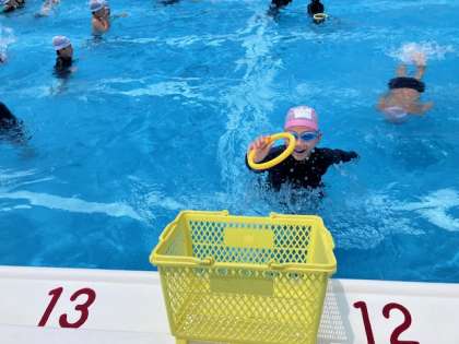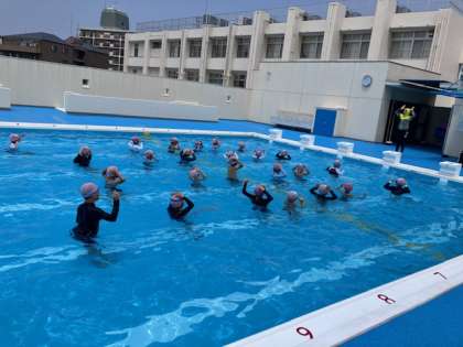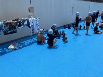 1.2年生はプールの学習で水なれや宝探しなどをしました。今日もとても暑いので途中の水分補給はかかせません。