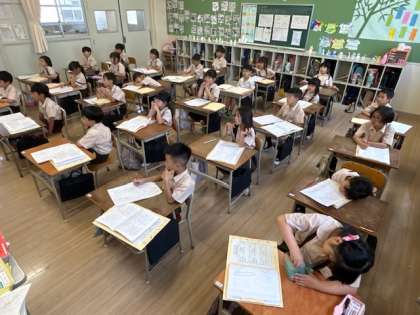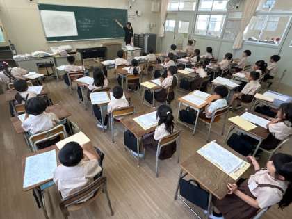 算数「1学期のまとめ」は、プリントを振り返って学習内容を確かめました。