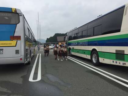 10時56分 道の駅「まほろばの里」に到着し、休憩をとっています。子どもたち全員、元気に過ごしています。みんな、時間を守って行動しています。