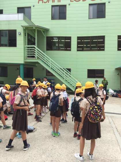 11時50分 宿舎となるアサヒロッジに到着しました。はげしいバス酔いをする子もなく、全員、元気に過ごしています。