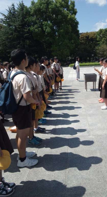これから、原爆死没者慰霊碑にて、平和宣言をします。その後、慰霊碑めぐりです。