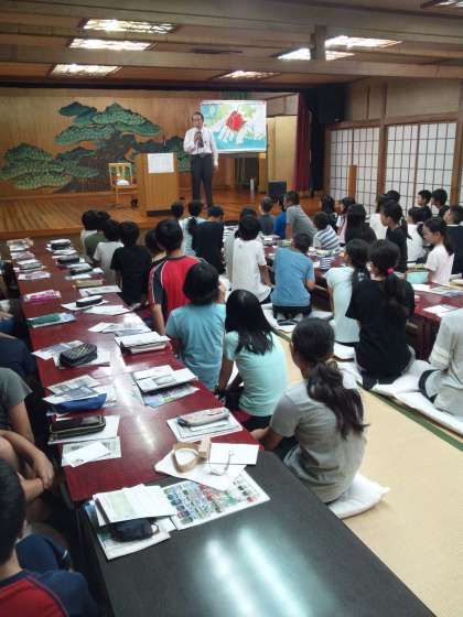 被爆体験講話を真剣に聞いています。