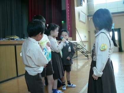 予定の各教室をすべてまわった後は、ゲームをしたり、2年生が去年育てたアサガオのたねを1年生にプレゼントしたりしました。1年生も2年生も楽しくなかよく過ごすことができました。