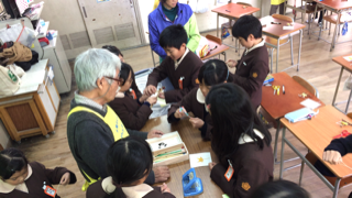休み時間には、持ってきてくださった手作りおもちゃで遊ばせてもらったり、野里小学校の大先輩である中田さんのお話を聞いたりして、楽しい時間を過ごすことができました。。