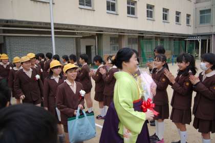 天候が少し心配されましたが、運動場に花道をつくって玄関まで6年生を見送ることもでき、無事に卒業式を終えることができました。