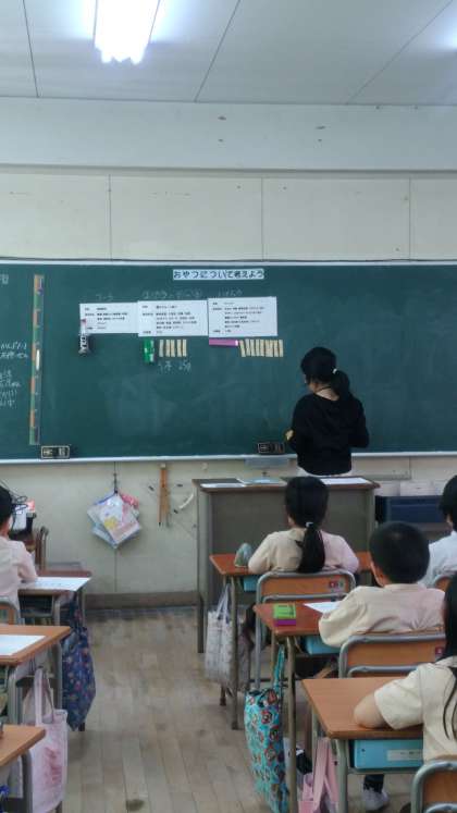 5月21日、4年生は「おやつ」をテーマに栄養学習をしました。他校の栄養指導の先生に来ていただき、普段何気なく食べているおやつにどれだけの砂糖が使われているかを教えていただきました。
