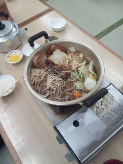 昨夜の夕食は、地元の食材を使ったすきやきです。それぞれの活動班で役割を分担して作っていきます。もちろん片付けも自分たちでします。