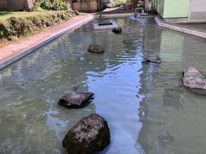 水の冷たさにキャーキャーと言いながらも魚を捕まえて喜んでいます。