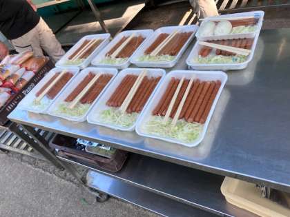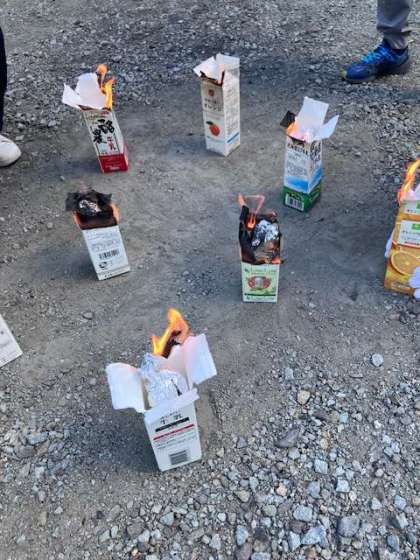 班で協力して食材を分けたり火をつけたりしながら作ります。