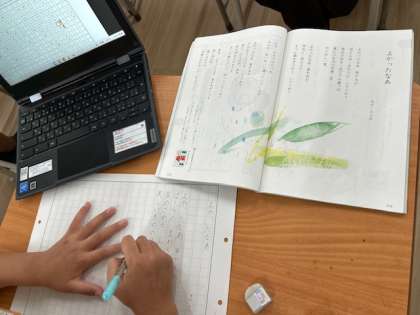 国語「よかったなあ」の詩を原稿用紙に正しく視写をしていきます。