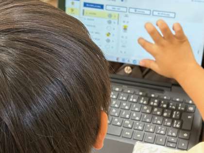 算数「たし算」は、計算ドリル・計算カード・タブレット等を使って練習問題を解いていきます。