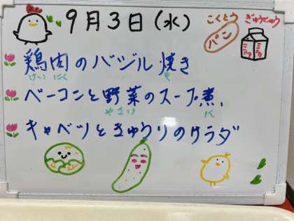 もうすぐ、美味しい給食です。暑さに負けず残さず食べます。