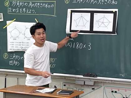 算数「図形の角を調べよう」では、多角形の角の和について求め方を考えました。