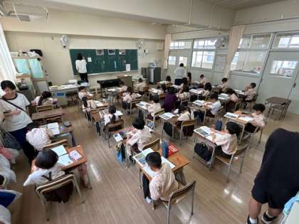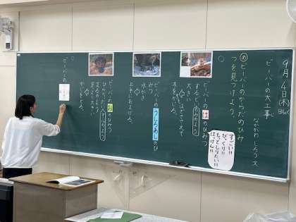 国語「ビーバーの大工じ」は、教育センターから講師の先生に参観いただき、教員研修として授業後に指導助言を受けます。