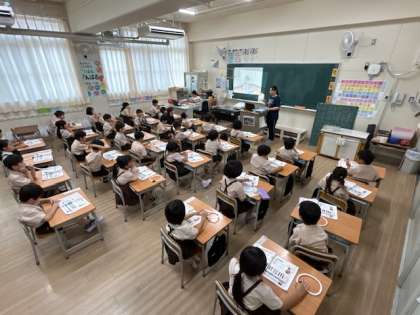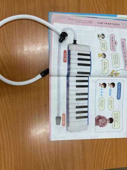 音楽「けんばんハーモニカとなかよし」では、鍵盤ハーモニカの正しい扱い方を学習しました。