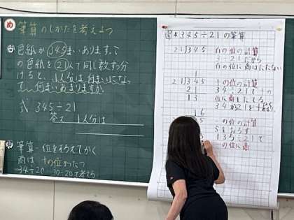 算数「筆算の仕方を考えよう」では、割算の筆算の手順に気を付けて計算をしていきます。
