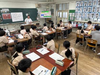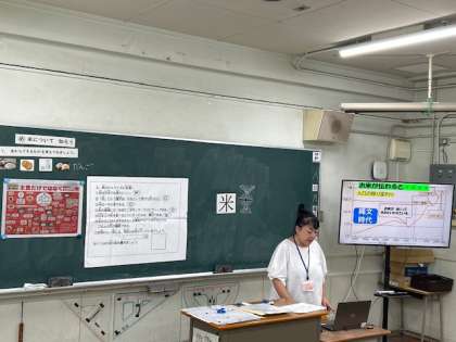 栄養指導「米について知ろう」では、米の歴史や不思議についてクイズ形式で楽しく学びました。
