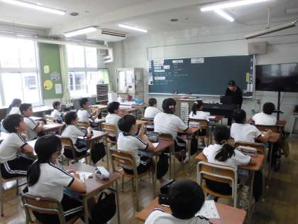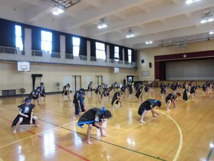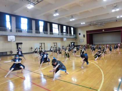 5年生は教室でおやつの作り方や取り方について学びました。後半は体育館でソーラン節を踊りました。