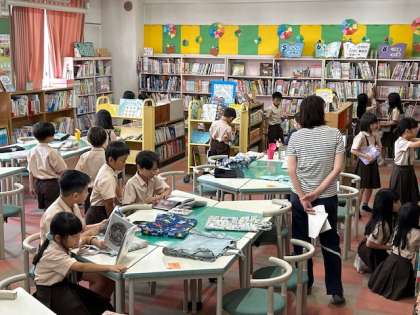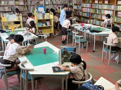 図書館では本を借りたり読んだりして読書に親しんでいます。図書館司書の方に助言いただき、読書への興味が高まっています。