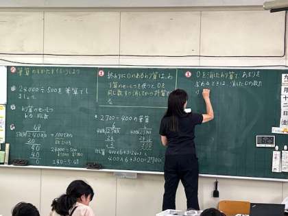 算数「筆算のしかたを工夫しよう」では、24000?500を筆算で計算できるようになりました。