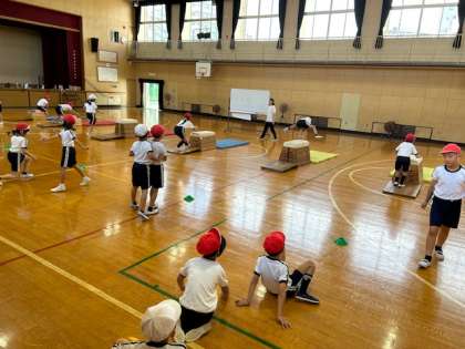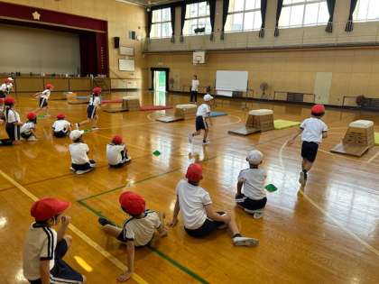 体育「とびばこ」は、場の設定も自分たちで協力してできるようになりました。