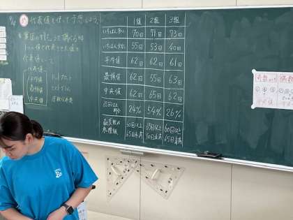 算数「データの特徴を調べよう」では、代表値や中央費を使って予想しています。