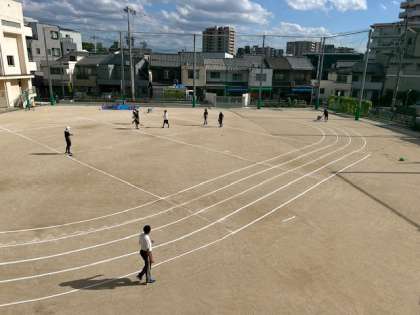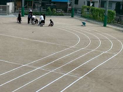 9/24以降に始まる練習に備えて確認しながらラインを引いています。安全に配慮しつつ全力を尽くせるように整備をしています。