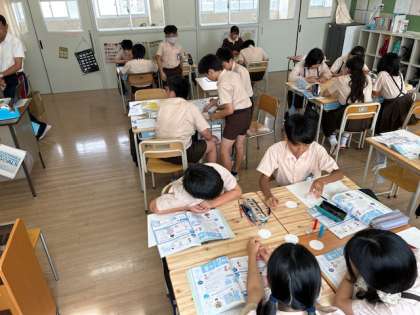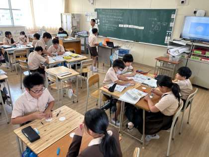 理科「リトマス紙を使った水溶液の仲間わけ」では、赤と青のリトマス紙で変化を観察していきます。