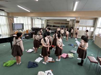 音楽「星の世界」は、歌声が重なり合う響きを感じながら合唱しています。