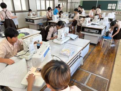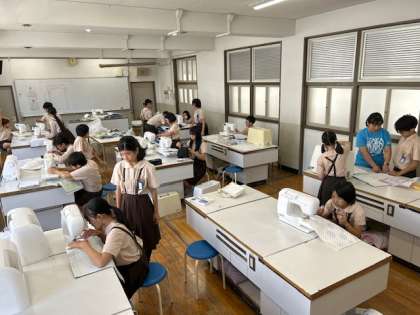 家庭科「ミシンでわきを縫おう」は、いよいよミシン縫いに取り掛かりました。