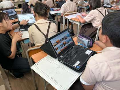 図工「どの国のどんなシンボルを作ろうかな」は、興味のある国について調べた事をもとにオリジナルのシンボルマークを作っていきます。