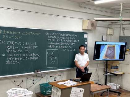 理科「流れる水の働き」では、実験の進め方や観察のポイントを確かめました。