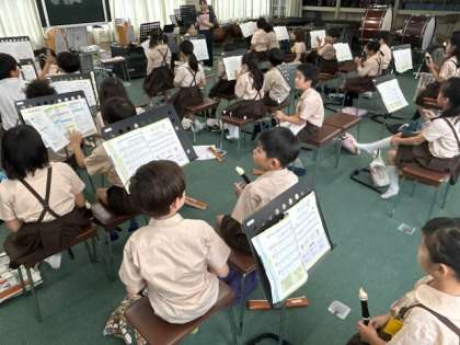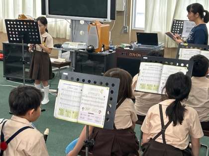 音楽「アチャ パチャ ノチャ」は、リコーダーのテストをしました。一人で演奏するのはとても緊張しましたが、みんなは静かに最後まで聴いてくれました。