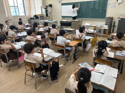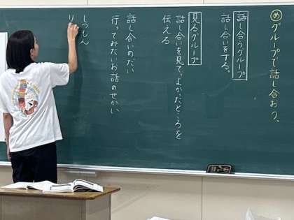 国語「グループで話し合おう」では、話合いをするグループと話合いの様子を観察するグループに分かれて上手に話合いを進める方法を考えました。