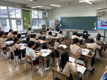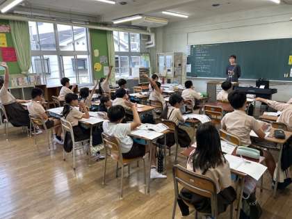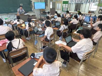 算数「倍数と約数」のまとめは、各自が入力したタブレットで「学習の振り返り」をみんなで共有しました。