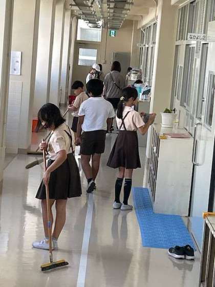 普段は手の届きぬくい所までリーダーが率先して取り組んでいます。低学年も掃除の仕方が上手になってきました。