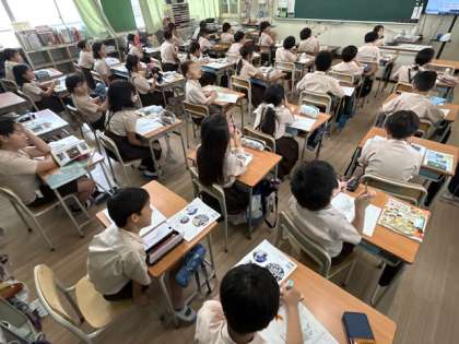 社会「大阪府に昔から伝わるもの」では、人形浄瑠璃や文楽等の動画を見ました。祭りや行事の他にも文化財について学習します。