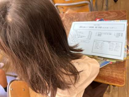 今日の予定や確認、配布物の説明等をしながら学習の準備に繋げます。