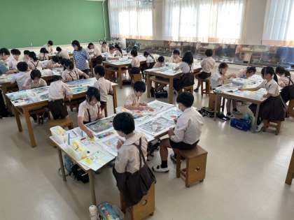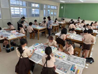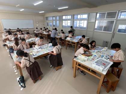 図工「版画」は、作品展に出品する版画を一生懸命に心を込めて作っています。